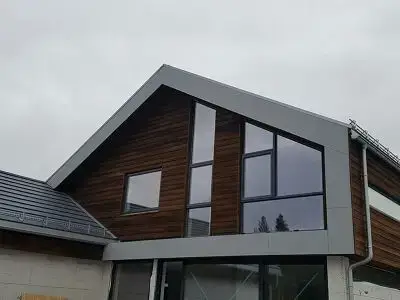 Vårt arbeid spenner fra rehabilitering og mindre tilbygg til komplette hus. Vi har jobbet mye med vedlikeholdsfrie fasader i aquapanel som er et luftet system som pusses, samt fasader i impregnert treverk som blant annet Kebony.